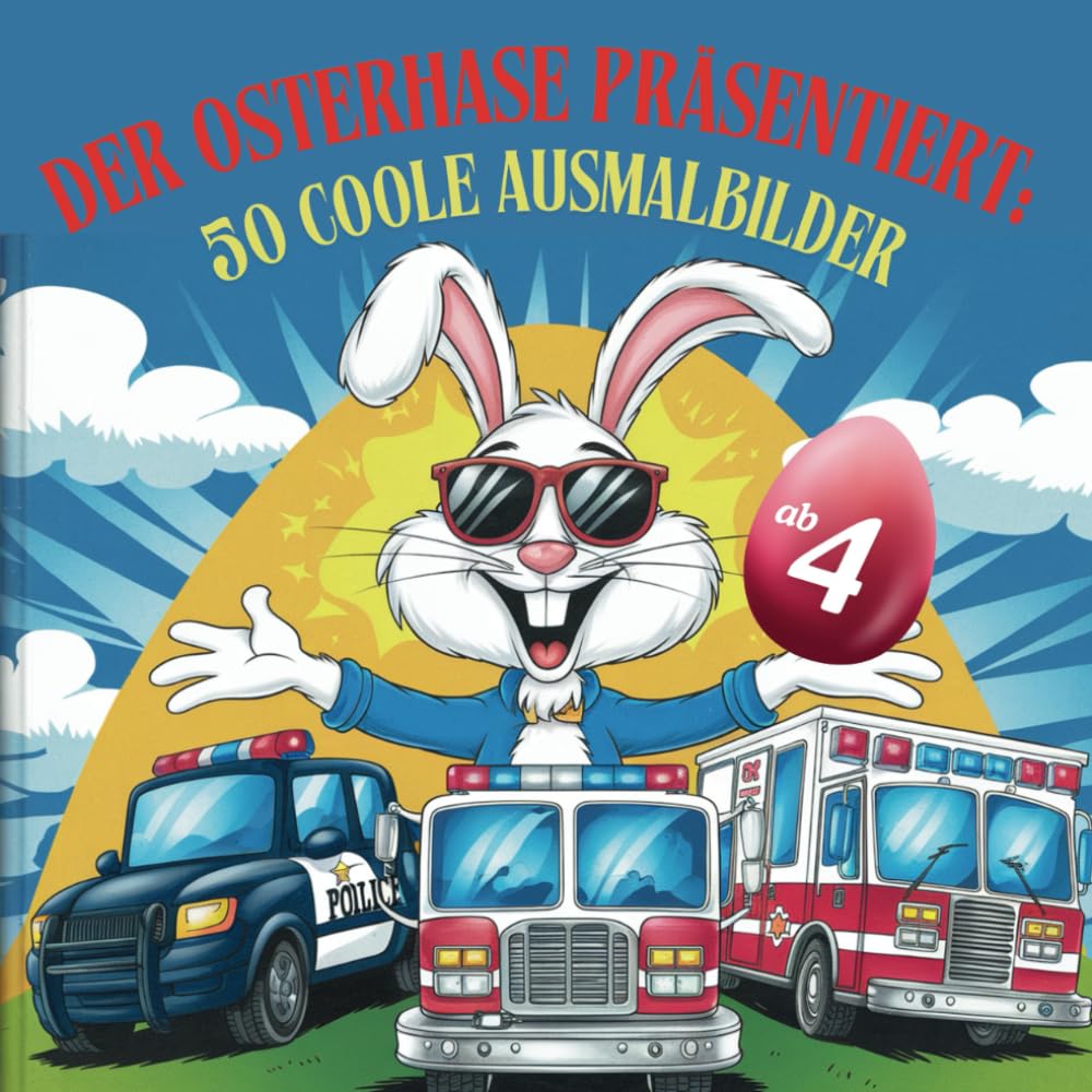 Der Osterhase präsentiert: 50 Coole Ausmalbilder von Einsatzfahrzeugen der Polizei, Feuerwehr und der Rettung