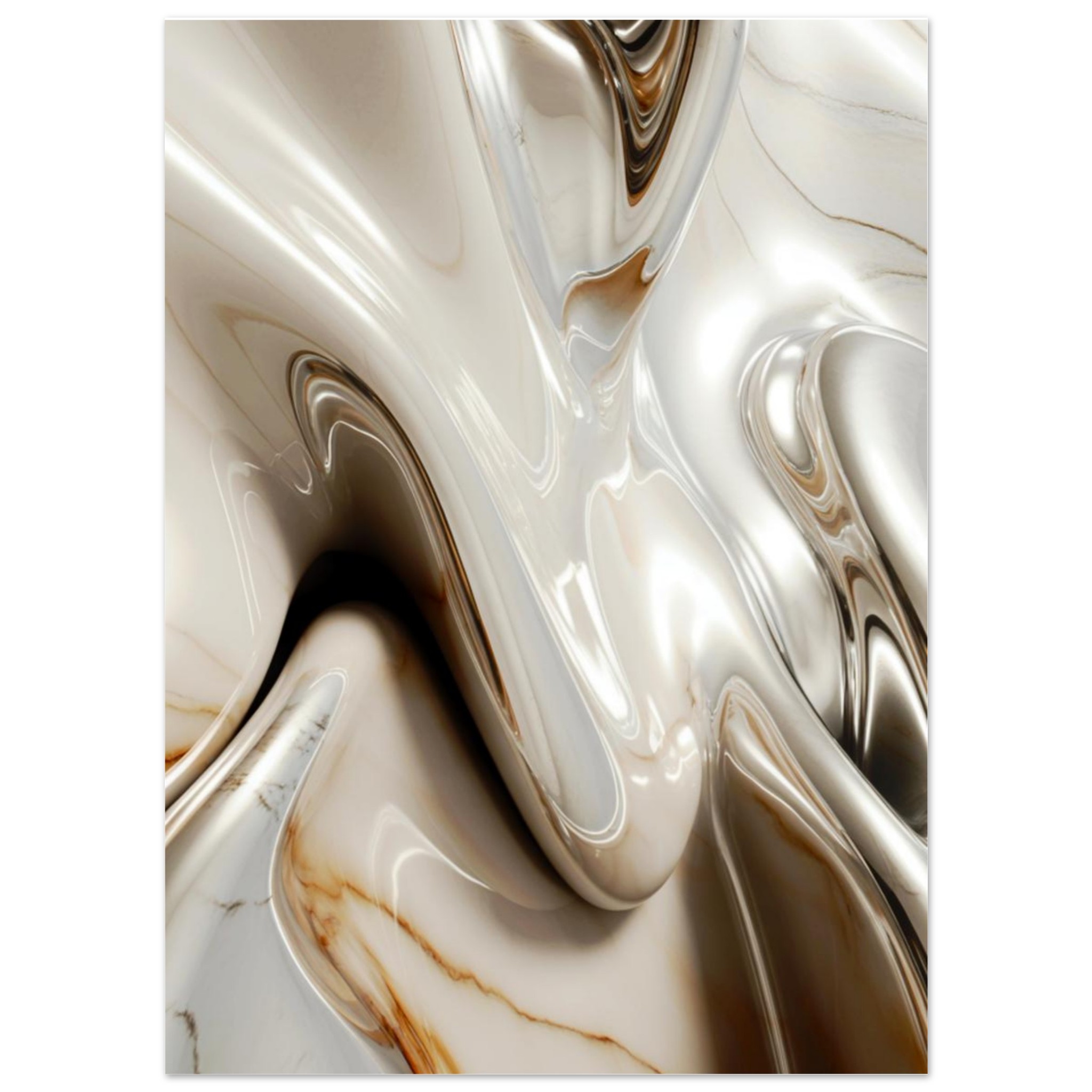 „Ivory Flow“ vereint fließende, perlmuttartige Formen mit feiner Marmoroptik zu einer ruhigen und zugleich luxuriösen Komposition. Die weichen Linien und hellen Nuancen erzeugen ein Gefühl von Leichtigkeit, Klarheit und zeitloser Eleganz.