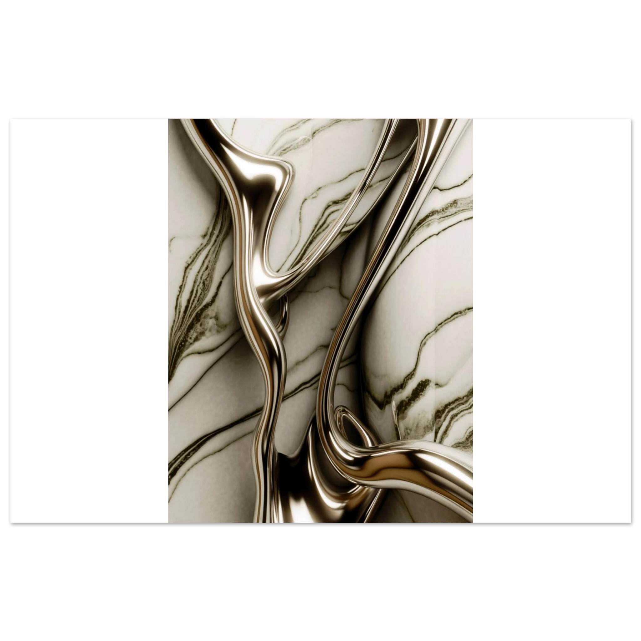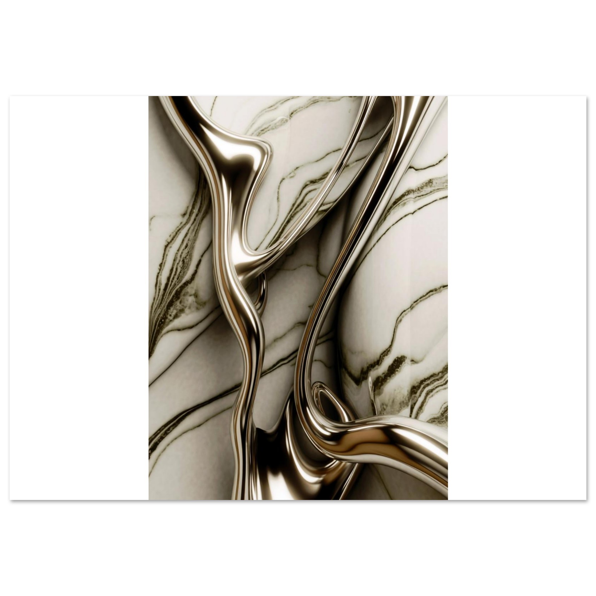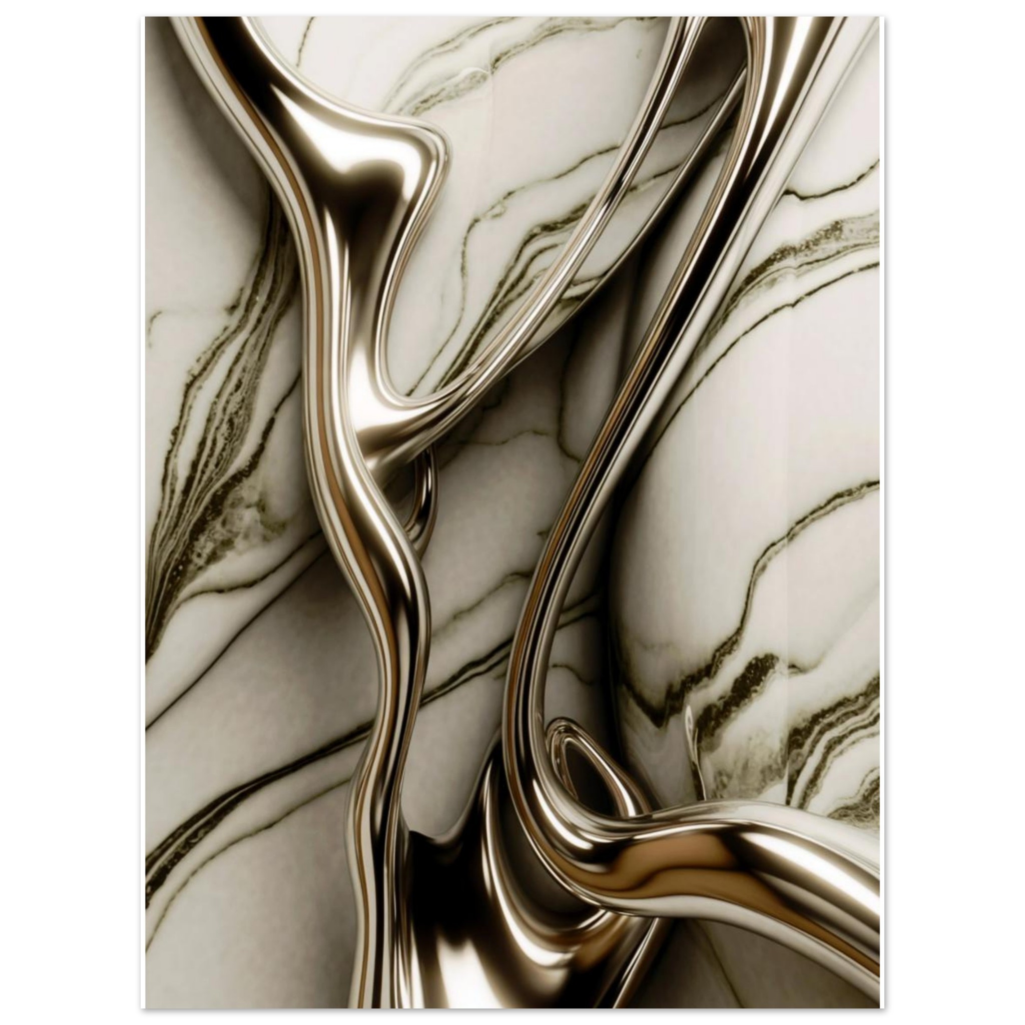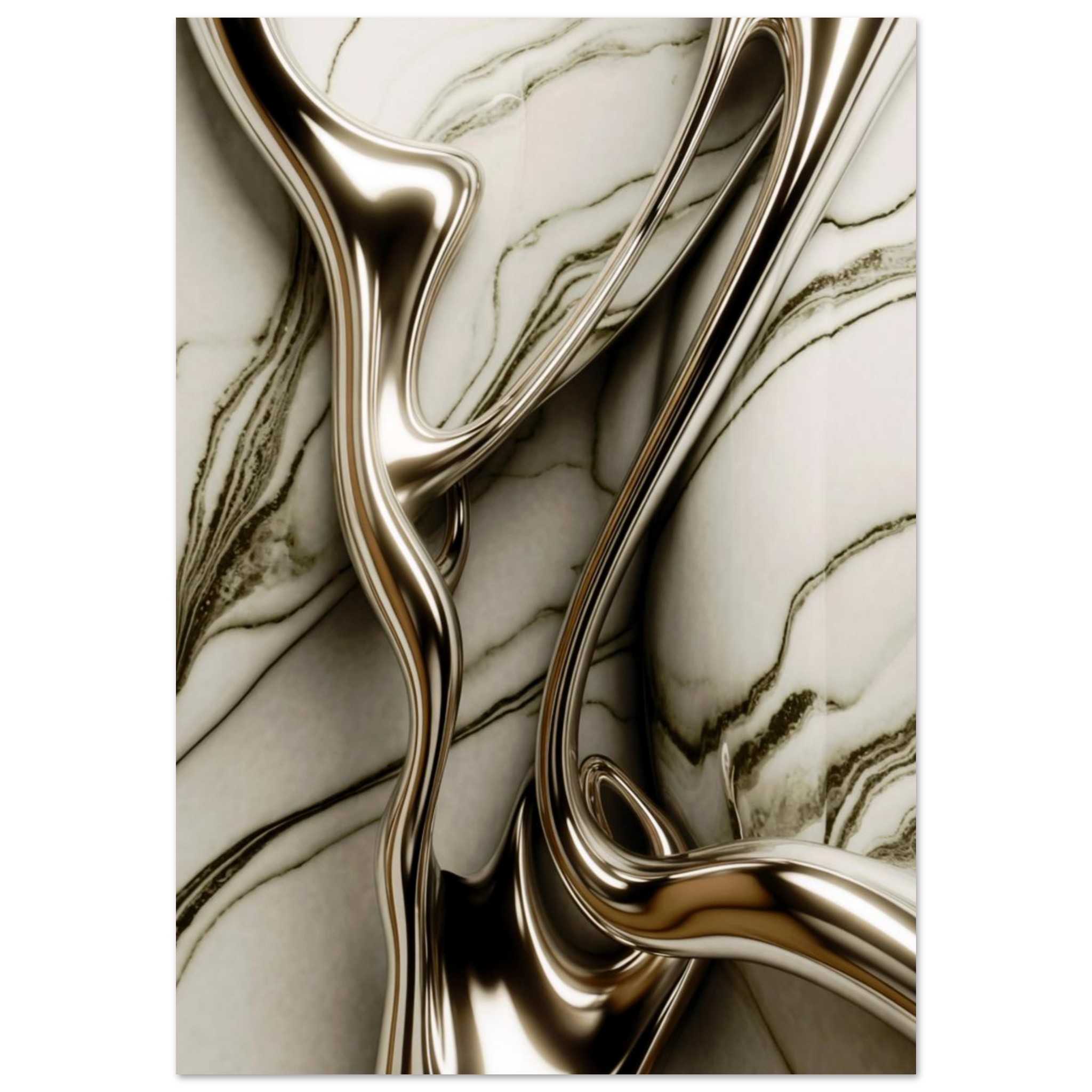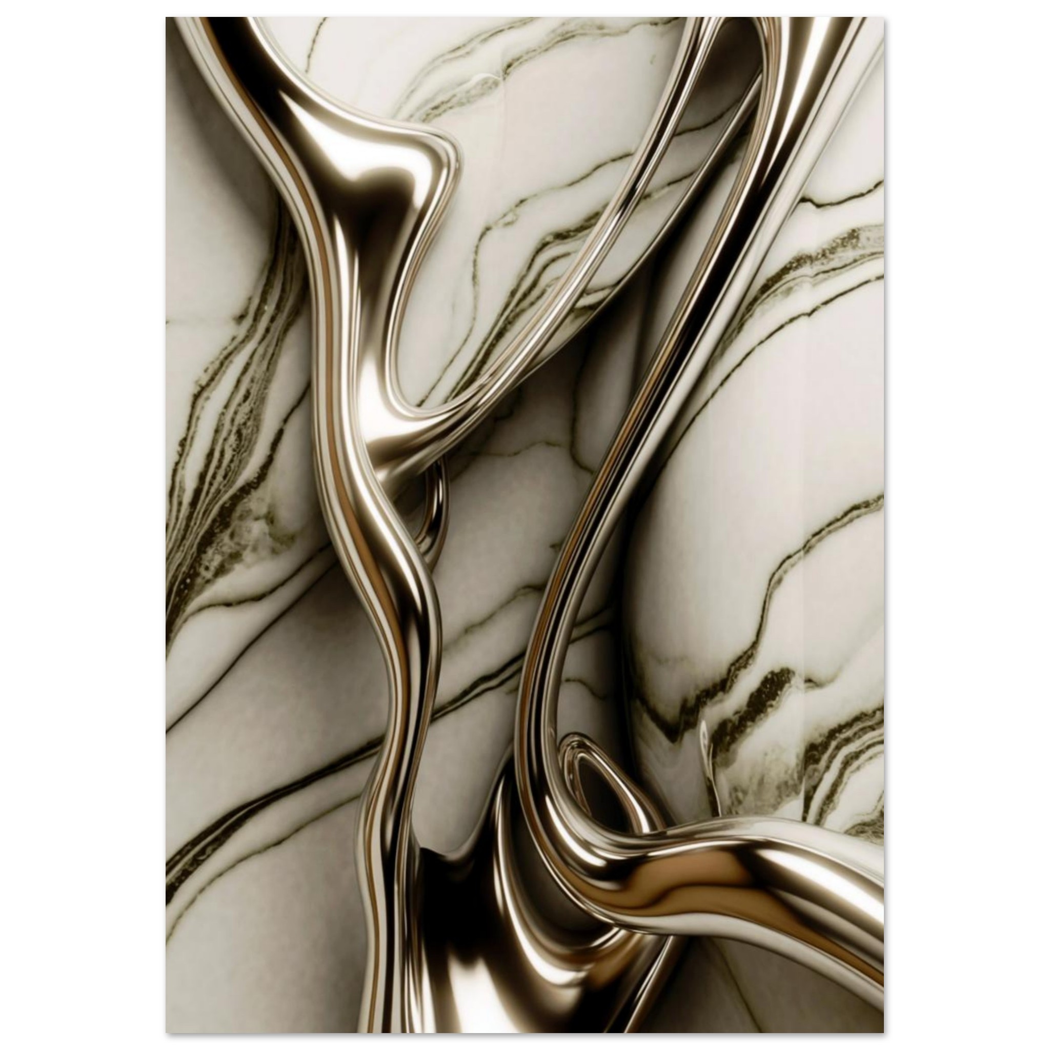 vereint fließende, silberne Formen mit einer feinen, hellen Marmorstruktur. Die sanften Linien erzeugen eine ruhige Dynamik und verleihen dem Motiv Tiefe, Klarheit und zeitlose Eleganz.