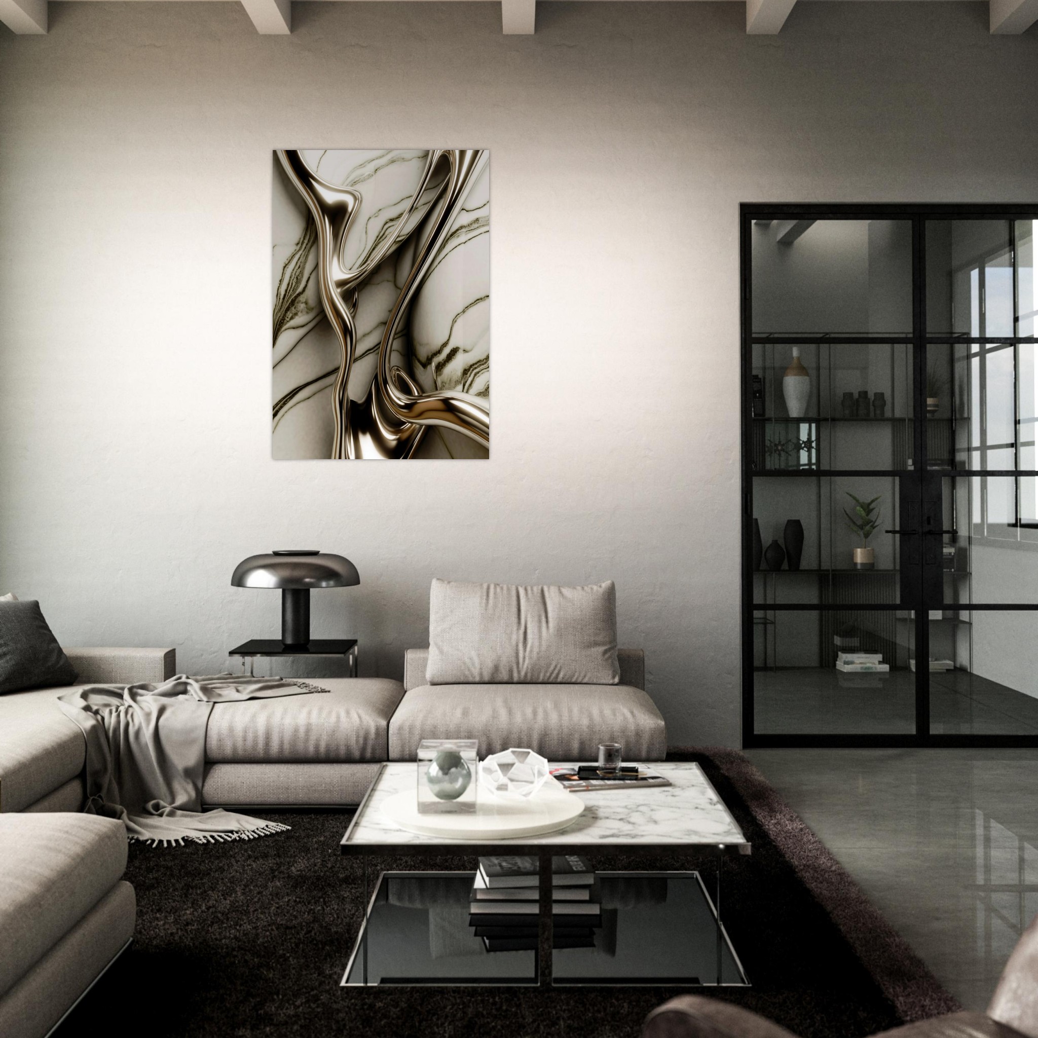 Dieses abstrakte Kunstwerk eignet sich ideal für moderne Wohnräume, minimalistische Interieurs oder stilvolle Arbeitsumgebungen. Es wirkt zurückhaltend und zugleich luxuriös – ein eleganter Akzent für Räume mit Anspruch an Design und Ruhe.